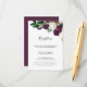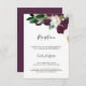 Este moody recepção de casamento roxo é perfeito para um casamento moderno. O elegante design floral apresenta flores púrpura de ameixa escura e tulipas brancas com folhas verdes esmeraldas e sotaques dourados. Personalize este cartão de recinto detalhado com as informações de recepção e inclua também o endereço do seu site de casamento!