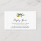 Uma placa de inserção de chá de exibição para pequenos chás de fraldas temáticos de citros. Apresentando uma pequena clementina e poema cor de laranja: "O seu belo presente será exposto para que não seja preciso enrolar de forma alguma. Um presente não embrulhado é tão doce, e economizará mais tempo para se misturar e comer."
