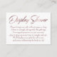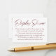 O ponto focal desta carta sutil e elegante são palavras-chave e frases em uma fonte elegante, inclinada, elegante e adicionada como sobreposições gráficas. As palavras "Chá de exibição" na frente e "Para:" e "De:" na parte de trás reproduzida neste script também foram embelezadas com um efeito de folha de ouro rosa de falso suave e glamouroso para adicionar à vibração comemorativa. Um campo de modelo foi configurado para oferecer instruções para convidados que não embrulhassem seu presente, em uma cor correspondente de cabana de rosa. Por favor, sinta-se à vontade para mudar a redação da forma que quiser. O plano de fundo foi definido para um branco editável; você também pode mudar isso para qualquer cor que você preferir. // 78 // Concebida por Melody Watson para Paper Muserie.
