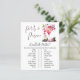 Flores Elegantes de Jardim com Vidro de Champanhe, Berries e texto "Petais e Prosecco" Cartão de Jogo de Chá de panela Floral Ela Preferencialmente? sobre a Noiva em cores lilás, lavanda, rosa-pincel, pêssego, damasco e verde.