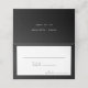 Bem-vindos ao nosso design do Black Modern Script Menu Choice Folded Place Card, onde o minimalismo moderno encontra a arte da caligrafia. Esta estética curada traz um ar de sofisticação para o seu dia especial - com uma reviravolta de feitiço, charme casual. A combinação de uma simples tipografia com uma letra na moda adiciona uma personalidade única ao seu casamento. Este design clássico oferece um aspecto eterno e polido que é perfeito para primavera, verão, outono ou casamentos no inverno. Uma simples paleta subestimada de fundos pretos e texto branco cria o cenário neutro perfeito para sua celebração. Torne seu casamento muito elegante com nossa adorável coleção de Script Moderno. Tal como acontece com todos os nossos designs, se tiverem perguntas ou pedidos especiais, por favor, perguntem.