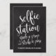 Um sinal de casamento elegante e moderno, apresenta o texto "estação de selfie, pegue um adereço e faça uma pose" em uma fonte de letra extrovertida, a textura da pincelada adiciona um sentimento espontâneo e divertido. A cor do fundo pode ser personalizada de acordo com suas necessidades e preferências, por favor entre em contato comigo se tiver algum pedido especial.