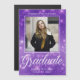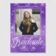 Anúncio de foto de formatura de brilho roxo com o seu nome de segundo grau personalizado e a sua classe sob a sua imagem de retrato do mais velho de tendência. Personalize essas cartas elegantes para uma mais velho formada na classe de 2025. Personalize com um segundo de uma bela fotografia de estudante no verso, juntamente com os seus detalhes de início.