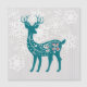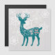 Placa de Magneta de Floco de Neve de Olk Deer de Woodland de inverno. Um veado escandinavo vermelho e azul-floral vermelho em um fundo branco de neve de inverno.
