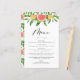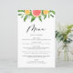 Adicione esta placa de menu de toranja brilhante e festiva à sua capa de mesa de evento. Apresenta terra de aquarelas ou toranjas, laranjas e verde. Personalize adicionando nomes e detalhes do menu. Este cardápio temático dos citros é perfeito para casamentos de verão e outros eventos.