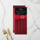 Essa placa de menu vermelha e preta com fita vermelha e joias correspondentes corresponde ao convite mostrado abaixo. Ele foi projetado em uma placa de rack para que a frente esteja brilhante e a parte traseira tenha um acabamento mate. Se quiser que um cartão de menu em papel de convite corresponda aos seus convites ou se tiver pedidos de itens adicionais ou alterações, envie um e-mail para niteowlstudio@gmail.com com a sua solicitação.