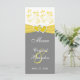 Este cartão de cardápio floral amarelo, branco e cinza tem uma fita IMPRESSA com um par de brilho FAUX IMPRESSO e broche de corações unidas com diamante que combina com o convite de casamento mostrado abaixo. Se você precisar de assistência para personalizar isso com seus detalhes ou se precisar de outros itens correspondentes, envie um email para niteowlstudio@gmail.com.