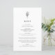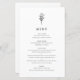 Cartão de menus floral minimalista personalizável. Ele apresenta uma arte preta de linha de buquê floral moderna com um padrão de pinstripes. Personalize adicionando a data e a escolha da refeição. Este cartão de menus floral minimalista é perfeito para casamentos, chás de fraldas, chás de panela, aniversários e muito mais.
