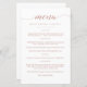 Menu de Casamento Clássico e Elegante de Caligrafia Dourada rosa. Um design elegante em rosa-ouro e branco ou qualquer cor de fundo que você escolher. Basta clicar no link personalizar mais, mostrado na área de personalização de texto à direita, e escolher seu fundo de cor personalizado. Este poster de placa torna rápido e fácil criar acréscimos incríveis à decoração do casamento. Os sinais podem ser diminuídos, há muitos tamanhos a serem escolhidos, assim como opções de enquadramento e correspondência personalizados.