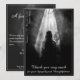 Este menu funeral tem uma design escura moderna e elegante com uma borda branca à volta da frente e atrás. A pessoa entra na luz - adeus minha querida Os nomes, texto e data podem ser personalizados no modelo. Projetado por pASob-design.