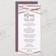 Este cartão de cardápio roxo, pincelado e ouro rosa é perfeito para um casamento moderno. O design chic apresenta linhas nítidas de travamento em roxo de ameixa, cor-de-rosa-pincel e folha de ouro rosa para um aspecto geométrico. Este menu pode ser usado para recepção de casamento, janto de ensaio ou qualquer evento. Nota: Este design não apresenta folha de ouro rosa real. É um gráfico de alta qualidade feito para se parecer com um martelo de ouro rosa.