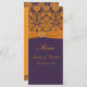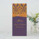 Esta placa de menu de damasco laranja e roxa corresponde ao convite mostrado abaixo. Ele foi projetado em uma placa de rack com uma frente brilhante e acabamento mate na parte traseira. Se quiser que um cartão de menu em papel de convite corresponda aos seus convites ou se tiver pedidos de itens adicionais ou alterações, envie um e-mail para niteowlstudio@gmail.com com a sua solicitação.