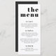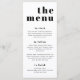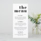 Este menu apresenta uma fonte serif ousada e uma design minimalista moderna. Use este modelo para editar as fontes, a cor da fonte e a cor do plano de fundo para corresponder às suas necessidades de evento.Este menu faz a adição perfeita ao seu simples chá de fraldas contemporâneo, retrô ou boêmico, chá de panela, casamento, aposentadoria ou qualquer outro evento! Este menu de mesa apresenta uma combinação simples de cor branca e preta, mas todas as cores são 100% editáveis para corresponder ao seu estilo.