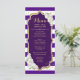 Cartão de Menu. Design de ouro roxo clássico com ouro brilhante falso. Apresenta faixas e rosas brancas. Perfeito para uma festa elegante.