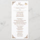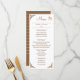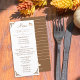 Um cartão de menu plano elegante com a opção para aperitivos, entretenimentos, louças laterais e sobremesas servidas ao seu casamento outono. © ArianeC Ilustrações — Todos os direitos reservados