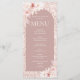 Esta placa Elegante Blush Floral Menu combinará bem com um evento cintilante em uma paleta colorida de borrão. Estas placas de lugar são perfeitas para uma exibição clássica de seus itens de menu ou outro texto.