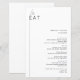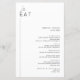 Menu de casamento simples e moderno personalizável, que apresenta uma fonte limpa em fundo branco, com siglas laterais. Esta é uma suíte de casamento minimalista e elegante. Para personalização mais avançada deste design, por exemplo, alteração do layout, da fonte ou do tamanho do texto, clique no botão "PERSONALIZAR" acima. Por favor, entre em contato comigo para qualquer pergunta!