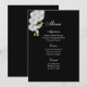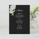 Cartão de Menu mostrado em papel básico a preto com uma adorável impressão de orquídeas brancas. Script e texto padrão em branco. Personalize os itens de menu clicando no botão personalizar, procure à direita e encontre as caixas apropriadas para alterar suas informações. Desejo-lhe os melhores votos para o seu Dia de Casamento.