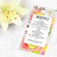 Cartão de Menu Lat floral de Primavera de Aquarela (tamanho 4"x 9") O menu de casamento Elegante tem um fundo floral intenso de primavera. As flores de aquarela são laranja, rosa e roxa. Este cartão de cardápio de casamento faz parte da "Coleção de Vivacidade Floral A102" do Primavera, onde você pode encontrar uma variedade de produtos de casamento coordenadores. Há duas maneiras de encontrá-los: 1) Visite a coleção inteira em: https://www.zazzle.com/collections/spring_floral_vivacity_a102-119997343833550847 ou 2) Escreva A102 na caixa de pesquisa DESTE compro Para mais informações, contacte-nos szdesigns2021@gmail.com