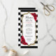 Cartão de Menu. Design vermelho preto clássico com ouro brilhante. O Floral design apresenta faixas pretas e brancas, fontes de script e rosas vermelhas. Perfeito para uma festa elegante.