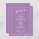 Placa de menu de Lavanda mínima elegante. A ausência de cores (apenas cinza escura e branca) dá a esta design para ser aceitável durante todo o ano para as cerimônias de casamento. Se precisar de personalização, entre em contato comigo szdesigns2021@gmail.com