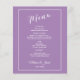 Placa de Menu Simples de Lavanda Minimalista Elega