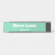 Adicione o nome da sua empresa, o seu nome e logotipo, bem como as informações da empresa sobre este fundo de blocos componentes turquesa com texto branco.