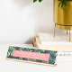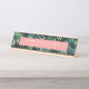 A placa de nome do chic desk tropical contém duas linhas de texto personalizado para seu nome e título ou nome comercial. Personalize com seus detalhes em modernos caracteres brancos em um retângulo cor-de-rosa colocado sobre um fundo dramático de folhas botânicas e folhagem da selva.