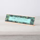 A placa de nome do chic desk tropical contém duas linhas de texto personalizado para seu nome e título ou nome comercial. Personalize com seus detalhes em modernos caracteres brancos em um retângulo aqua turquesa brilhante contrastante colocado sobre um fundo dramático de folhas botânicas e folhagem da selva.