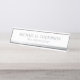 Placa branca Elegante profissional e placa de suporte prateado com nome e profissão no estilo de fonte de serifa clássico prateada, com borda prateada inferior, em fundo branco. Perfeito para um agente imobiliário, designer, advogado, consultor e muitas outras profissões. Nota: Os detalhes da folha são simulados no trabalho de arte. Este produto não contém detalhes em papel laminado.