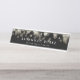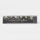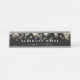 Uma placa de identificação da mesa elegante em preto nítido apresenta luzes luminosas de boque em tons de branco e champanhe em cascata a partir de cima. Personalize com seu nome e título ou nome comercial em letras brancas modernas.