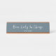 Surpreenda o seu chefe com esta Câmara Dourada, Lady Dusty Blue Office Personalizada Plate. Ele é elegante minimalista projetado com fundo azul-claro personalizável e escrita à mão com tendências brancas. A frase é "dama chefe no comando" seguida do nome do chefe. CLIQUE EM PERSONALIZAR OPÇÃO MODELO E DIGITE NOME.