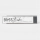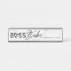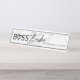 Personalize e decore o seu espaço de trabalho e dê a conhecer quem você é com a nossa divertida, na moda e moderna placa de nome personalizada de mesa "Chefe Babe". O design apresenta um fundo de mármore branco e na moda com "Boss Babe" desenhado em um trendy script de pincel preto e uma tipografia serif com um coração na moda substituindo a letra "o" e personalizado por seu "também conhecido como"... seu nome.