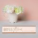 Personalize e decore o seu espaço de trabalho e dê a conhecer quem você é com a nossa divertida, na moda e moderna placa personalizada de mesa "Chefe Mãe". O design apresenta um fundo de luz na moda com "Mãe Chefe" desenhado em um script de pincel de ouro falso de tendência e tipografia san-serif com um coração na moda substituindo a letra "o" e personalizado com seu "também conhecido como"... seu nome.