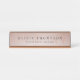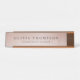 A placa de identificação da mesa Elegante apresenta a inscrição negra clássica em um fundo cor-de-rosa pincelado, enfeitiçado com fios de rosa dourados falsos. Personalize com seu nome e título ou nome comercial.