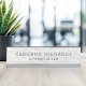 Placa personalizada com o nome e o título em uma textura de fundo de madeira de cinza clara impressa.