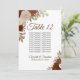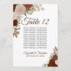 Estes elegantes cartões de mesa de casamento apresentam um design bócio rústico com rosas de cor d'água pintados manualmente no outono ou outono, incluindo tons de laranja ferrugem, número queimado e pêssego coral. O cartão inclui uma lista de nomes para que os seus convidados tenham facilidade em encontrar a mesa certa.
