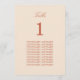 Cartão de Mesa de Script Terracotta de Nomes de Convidado, fácil de personalizar no modelo de personalização on-line para mostrar o número da tabela para a mesa apropriada e os nomes de convidado para essa mesa. O design copia automaticamente para o outro lado da placa de forma a ajudar os convidados a encontrar a mesa de ambos os lados da mesa. Com um layout simples e minimalista de design, esta placa de mesa na moda incorpora espaço ao redor dos elementos de texto para permitir a escolha de métodos de exibição, como travar ou enquadrar a placa.
