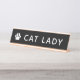 Placa de identificação de mesa clássica preta e branca "Dona dos Gatos". Pode ser totalmente personalizada com seu texto e cores personalizados.