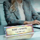 Placa de Nome de Mesa de Escritório em Ouro Escovado Personalizada | Placa de Nome Executivo Personalizada com Texto Preto em Negrito | Placa de Mesa Moderna e Profissional para Negócios, Presente e Decoração de Escritório