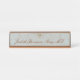 Our elegant name plate features a graceful, contemporary script on a soothing-hues jacquard background. Accented with the universal medical symbol (removable / replaceable with your alternative choice of image or symbol, if desired.) A perfect name plate for your desk at work, or home office desk, front reception desk, or on your wall or office door.