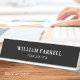 Esta placa de nome clássico cria uma aparência profissional no escritório. Sua simples design combina as teclas tradicionais e modernas para uma estética sofisticada e minimalista. Personalize o modelo com seu nome e cargo. Este design elegante é perfeito para muitas profissões diferentes, incluindo papéis de empresa e executivo, consultores de negócios, empresários, proprietários de pequenas empresas, profissões legais e muito mais. Cores impressas: preto e branco.