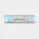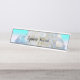 Um fundo bonito macio com sombras de branco e aqua com híbridos brancos e azuis. Adicione seu nome para personalizar esta placa de nome da mesa de na moda.