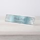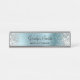 A cinza cintilante prateada cintilante se destaca nas bordas laterais, sobre uma folha metálica azul-clara, azul esfregada, ou de aço inoxidável, estilo ombre. As cores principais são azul claro, cinza de prata, prata, preto e branco. Placa personalizada de desktop com espaço para nome e cargo para ela. O estilo e o tamanho da fonte podem ser alterados, se necessário.