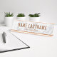 Personalize esta placa de nome da mesa minimalista de Na moda moderno com fontes marrons de cobre, com um impressão de fundo do padrão de mármore branco da Cinza. Observe que a cor da fonte de cobre é um impressão de cor. Esta placa tem acabamento de rosa dourado, você pode mudar isso para duas outras opções, para acabamento de metal preto ou prateado.
