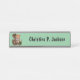 Esta carteira ou prato de solto é verde-menta com um casal de gato macho e fêmea giro. A gata amarela está dividindo ratos de sua cesta com o macho marrom. Personalize seu nome com o modelo.