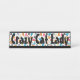 Esta placa de nome de Senhora de Gato Louco, personalizável, tem um fundo branco com hipsteres em cores coloridas.