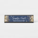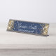 Garota cintilante de ouro brilhante nas bordas laterais sobre um fundo azul-da-noite de cor sólida As cores principais são azul escuro, amarelo-ouro, ouro, bege, bronzeado, preto e branco. Placa personalizada de desktop com espaço para nome e cargo. O estilo e o tamanho da fonte podem ser alterados, se necessário.