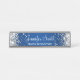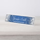 Brilhante prateado cintilante nas bordas laterais sobre um plano de fundo azul brilhante e escuro A cor principal dos efeitos decorativos da luz digital, gráfico sombrio e caligrafia elegante são azul escuro, azul, cinza, prata e branco. Placa personalizada de desktop com espaço para nome e cargo. O estilo e o tamanho da fonte podem ser alterados, se necessário.