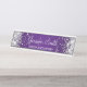 Garota cintilante prateado cintilante nas bordas laterais sobre um fundo de gradiente roxo escuro e real A cor principal dos efeitos decorativos de brilho digital, gráfico ombre e caligrafia elegante são roxo escuro, roxo real, cinza, prata e branco. Placa personalizada de desktop com espaço para nome e cargo. O estilo e o tamanho da fonte podem ser alterados, se necessário.